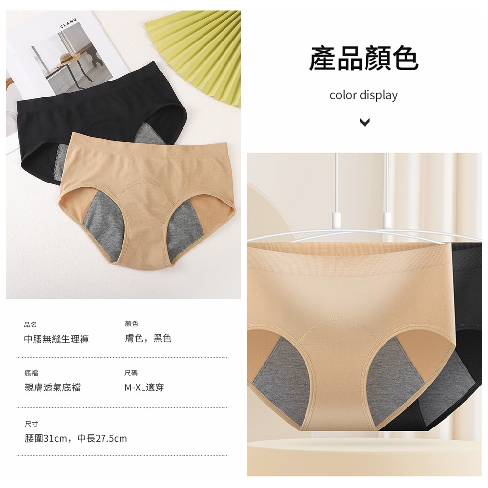 現貨台灣製內褲 無縫純色生理褲 女生生理褲 高腰中腰生理內褲 加長檔生理內褲 PANTIES