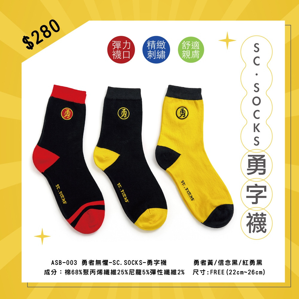 【勇者無懼】-白沙屯勇字 SC.SOCKS-勇字襪(晶圓紗)