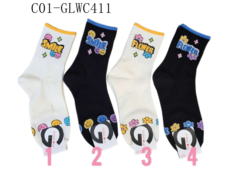C01-GLWC411#可愛字母笑臉襪中筒襪