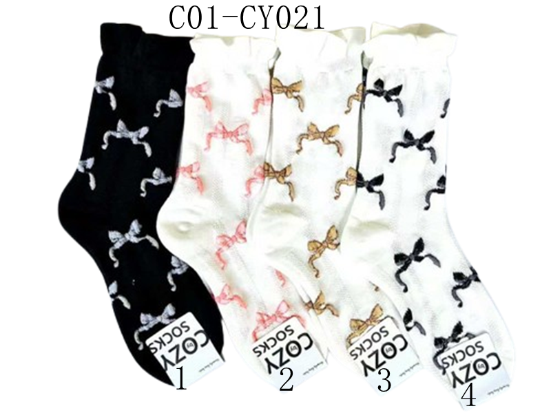 C01-CY021#撞色芭蕾蝴蝶結中筒襪