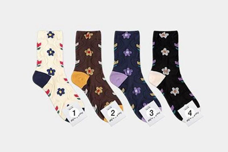 現貨韓國襪 雙花拚色中筒襪 小花襪B組 中筒襪 男女襪 條紋襪 塗鴉襪 撞色襪socks