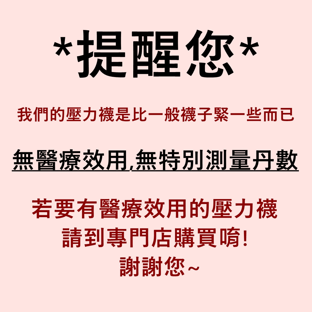 剛好的壓力貼緊腿部,為一天累積的壓力完美釋放舒服環包雙腿,彈力包覆不緊勒漸進式加壓 讓腿部得到放鬆適合久坐與久站者並提升腿部視覺美感材質溫和舒適不刺癢居家外出或運動都可穿戴【 注意事項】▶ 為保障消費者的權益,襪品屬於貼身衣物,商品一經拆封,恕無法退換貨。 ( 如遇到瑕疵請使用聊聊與客服人員洽詢 )▶ 商品因手工測量,或有1-2cm誤差,屬正常情況▶ 產品顏色可能會因拍攝與螢幕色差而有些許差異,請以所收到之實品為準。▶ 下單視為同意上述之賣場規範。