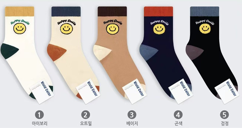 08現貨韓國襪 撞色絨毛微笑中筒襪 微笑襪 撞色襪 英字襪 接拚襪 男女襪 韓國中筒襪 socks