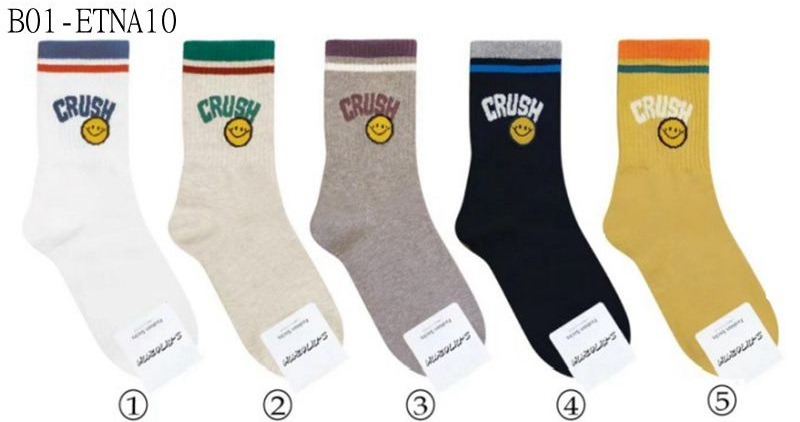 B01-ETNA10# 韓國ETNA運動風笑臉CRUSH中筒襪