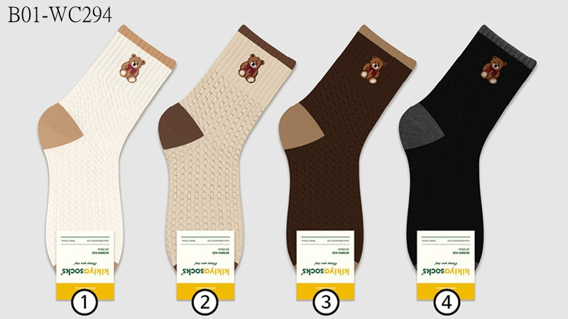 B01-WC294# 韓國KIKIYA羅口小熊方格紋中筒襪