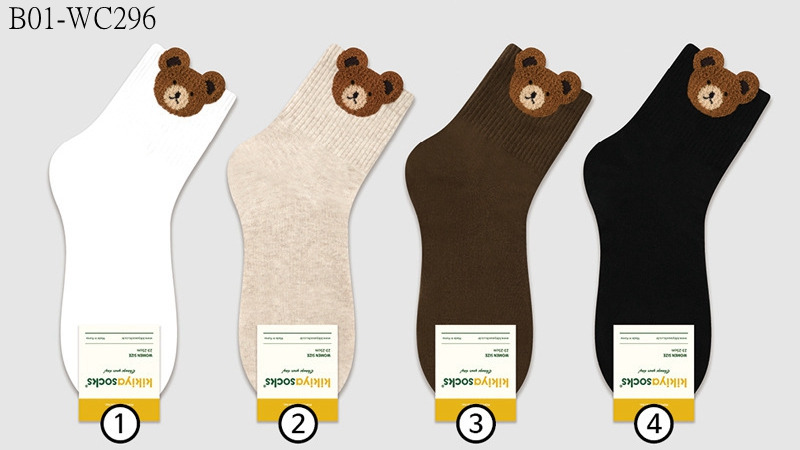 B01-WC296# 韓國KIKIYA襪口絨毛小熊中筒襪