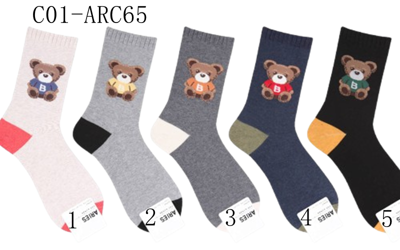 C01-ARC65#撞色字母小熊中筒襪