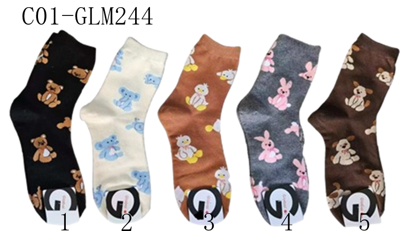 C01-GLM244#滿版卡通動物襪中筒襪