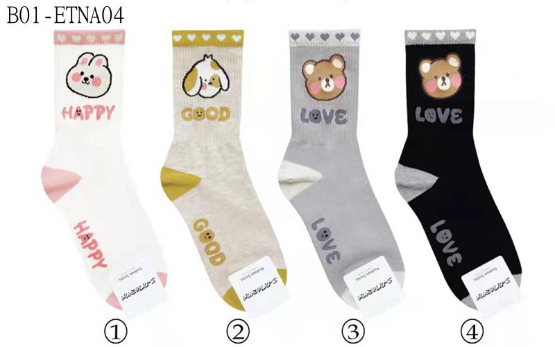 B01-ETNA04# 韓國ETNA愛心小動物臉英字中筒襪