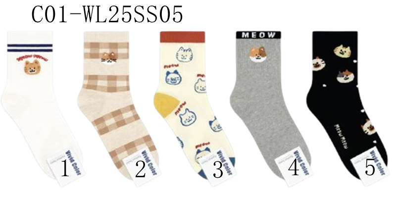 C01-WL25SS05#花貓嬉遊去中筒襪